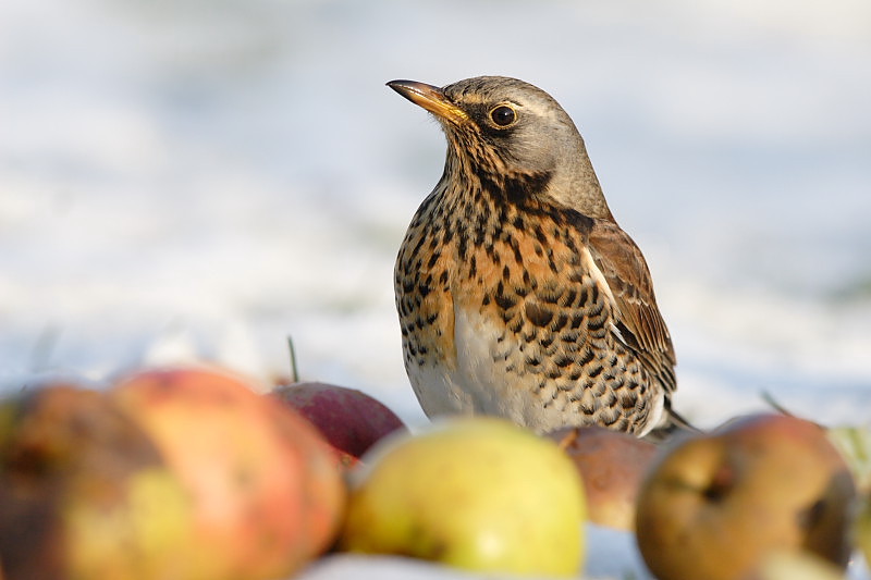 Det er et fantastisk foto: fine skarpe farver, og de uskarpe æbler i forgrunden skaber en virkelig god dybde i billedet!