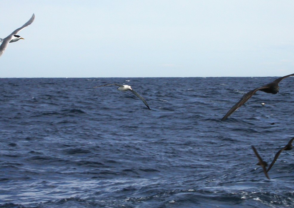 Beskrivelse: and Wedge-tailed Shearwater and Bergius Terne (Swift Tern - <i>Sternus bergii</i>).