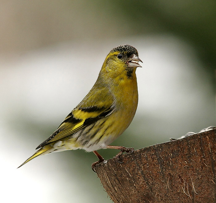 Så smukt et billede. En rigtig macho han. Flot gul farve, kunne meget godt ligne en mutation helt sikkert. Mundlam at det billede der, især at den flyver her i DK, den gule Grønsisken - (Carduelis spinus)