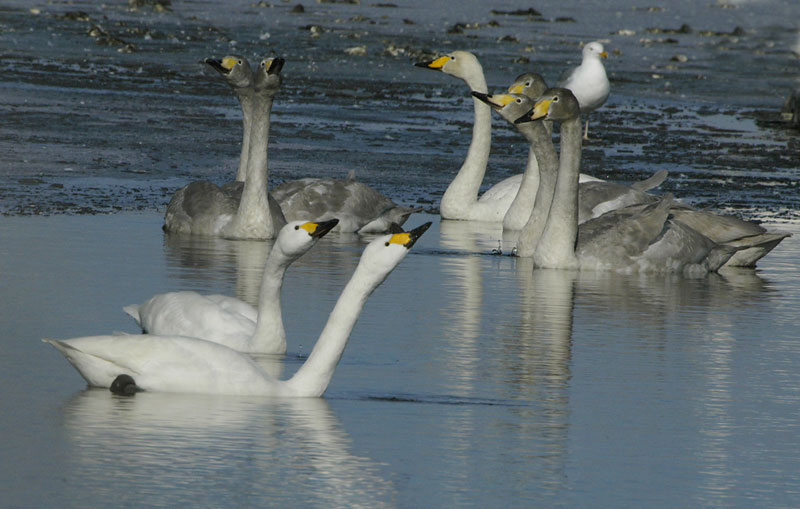 Beskrivelse: Blandet flok af Pibe-og Sangsvane