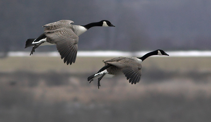 Grunden til jeg skriver denne kommentar er, at jeg synes der er bemærkelsesværdig forskel i hovedprofilen og halslængde/form, hvad angår de to gås på billedet ovenfor. Den ene gås virker kort- og tykhalset med kort næb, der virker bredt samt en rund kort pande. Halspletten virker stor og bred. Den anden gås virker derimod lang- og tyndhalset med aflang næb og lang stejl pande og mindre halsplet end den anden gås på billedet. Umiddelbart virker den gås der flyver forrest til at være mindre og ligeså have et mindre brystparti end den bagerste, men det skyldes sikkert fuglenes placering i billedet. Spørgsmålet er om de andre ovenfor beskrevne dele ligeledes er fotoeffekter eller er der tale om to forskellige arter/racer? Selv tror jeg, at der er tale om fotoeffekter. Hvad mener andre?