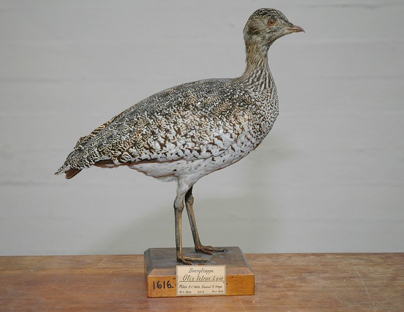 Beskrivelse: Fuglen står udstoppet på Zoologisk Museum, Copenhagen.