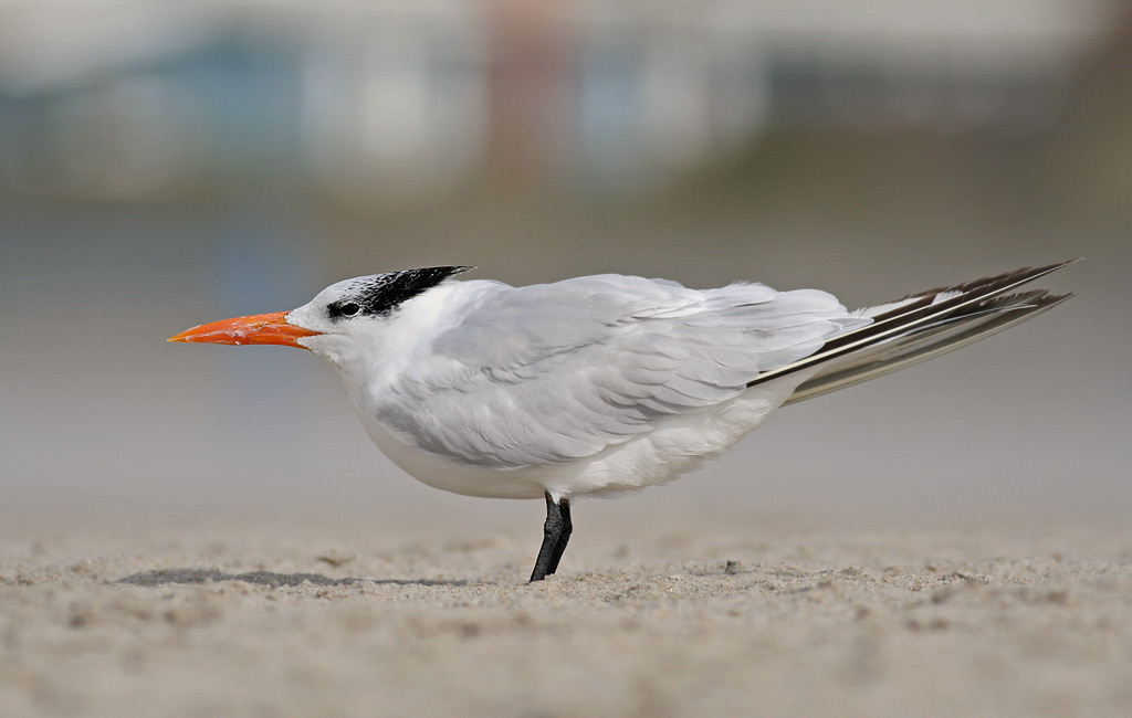 Næbfarven ER mere orange og næbbet lidt mindre voldsomt (direkte "tykt" hos rovterne)hos kongeternen; men det er svært at bedømme hos den fordiflyvende fugl. Kongeternen er i øvrigt ikke helt så bredvinget, mere i retning af Bergius' terne (Sterna bergii). Rart at have in mente, hvis...