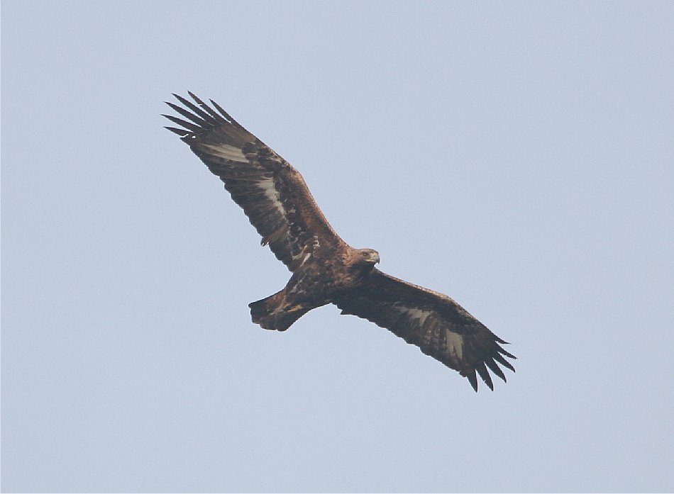 Beskrivelse: Ørnen blev set af mange danskere over alléen ved Næsbyholm, da den kom lige over.