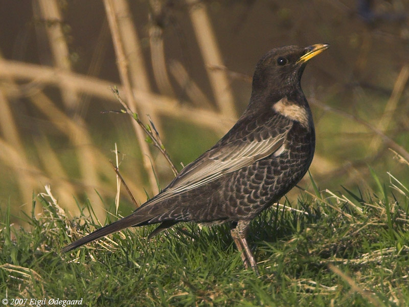 Beskrivelse: Een af 2 flotte Ringdrosler rastende på een af de første store trækdage. Og så må denne her vel være en hun såvidt jeg kan se.