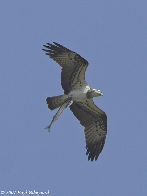 Beskrivelse: Een af de mange passerende Fiskeørne kom ind med frisk fisk fra kattegat, i dette tilfælde en Hornfisk hvor den så monstro har fisket den?