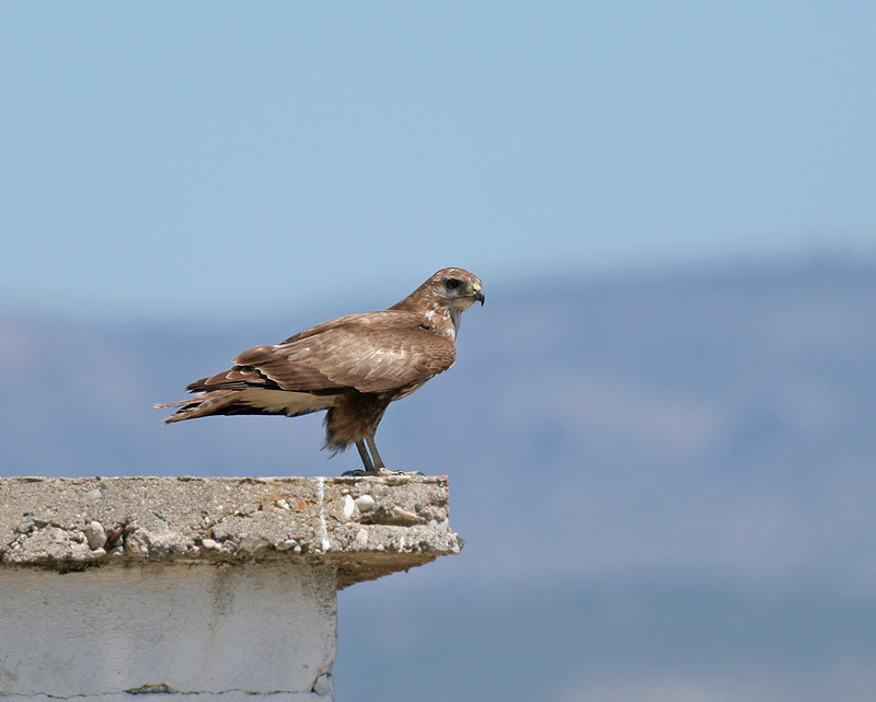 Aquila-ørne (inkl. dværgørne) har fjerklædte tarser (mellemfødder), så dværgørn mener jeg ikke det kan være.