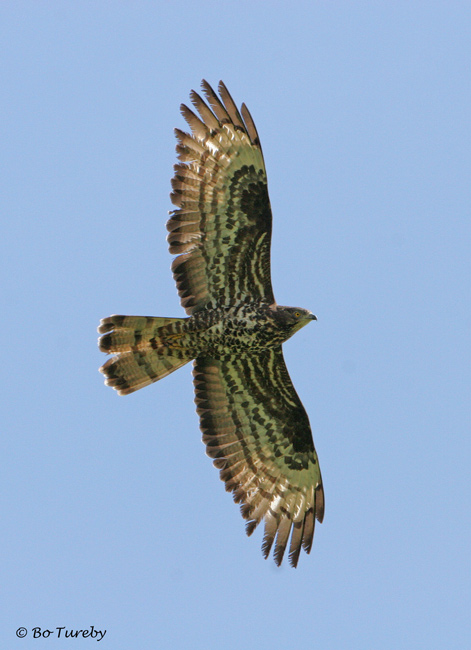 Til fordel for hun taler: de tre relativt ensartede mørke bånd på vingerne, tre synlige halebånd og gennemskinnelige håndsvingfjer. Det er de kendetegn, som jeg har holdt mig til i bestemmelsen jvf. Gensbøls 'Rovfuglene i Europa'. Desværre har jeg ingen fotos af oversiden.