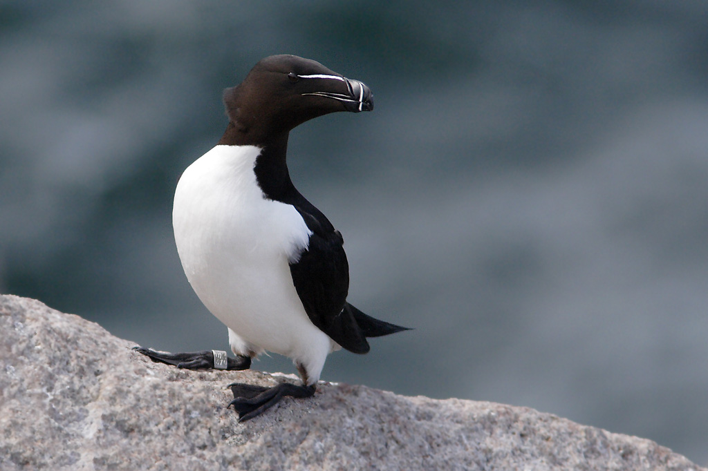 Beskrivelse: En af de mange alke med ringe. Så vidt jeg kan aflæse ringen, står der: DK1 470 i to linjer. Oplysningen er sendt til Peter Lyngs, Christiansøs Feltstation.