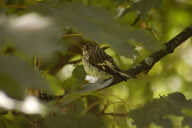 Beskrivelse: Jeg synes ikke helt denne juv. fluesnapper ligner en broget med den ret store håndrodsplet samt de hvide kanter på halen, kan det være en Balkanfluesnapper??