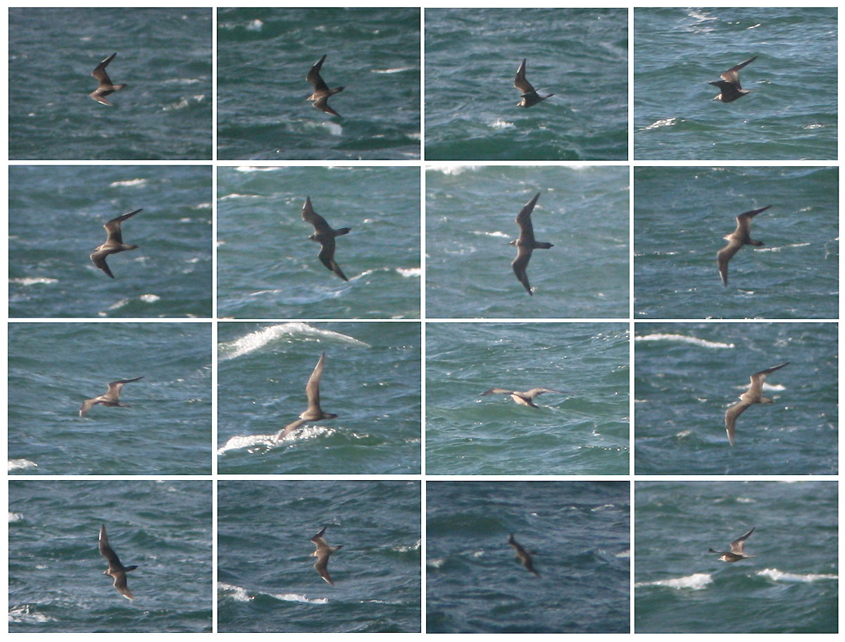 Beskrivelse: Bemærk hvordan farve/tone og især kontrastforhold ændres med lysets indfaldsvinkel og under medlys/modlys, især på overvinge og overgump/hale