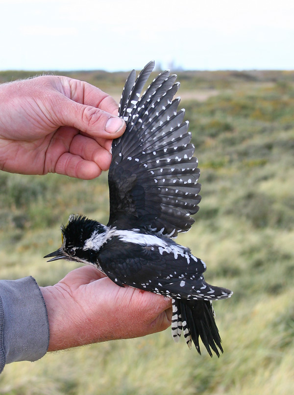 Following huge Swedish and Norwegian movements, the biggest for 20 years, a much expected (first winter male) Three-toed Woodpecker was ringed at Skagen, Nordjylland on 2nd having crossed the sea of Skagerrak. It was the 9th Danish record and the first since 1987. It reappered during 12th-15th and was still claimed by some up to 23rd - regarded by many as the most difficult Danish twitch ever! No photographs were ever taken in the field! A female was photograped by a single observer at nearby Tornby Klitplantage on 18th.