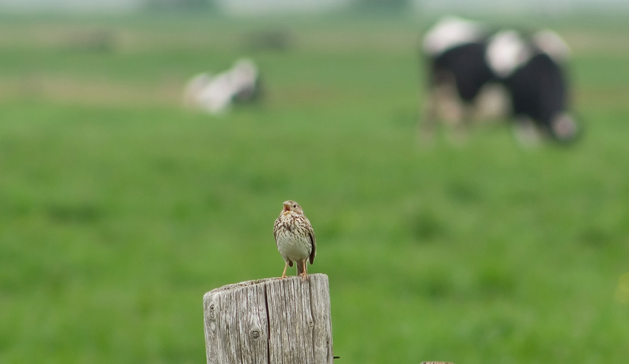 Beskrivelse: En tillidsfuld bomlærke gjorde sig til, imens vi nød hedehøgene over markerne.