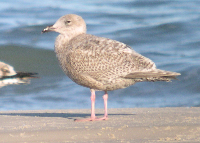 Håndsvingfjerenes farve - en mellemting mellem Sølv- og Gråmåge - passer fint på hybrid, men er også set hos blege, fejlfarvede Sølvmåger.