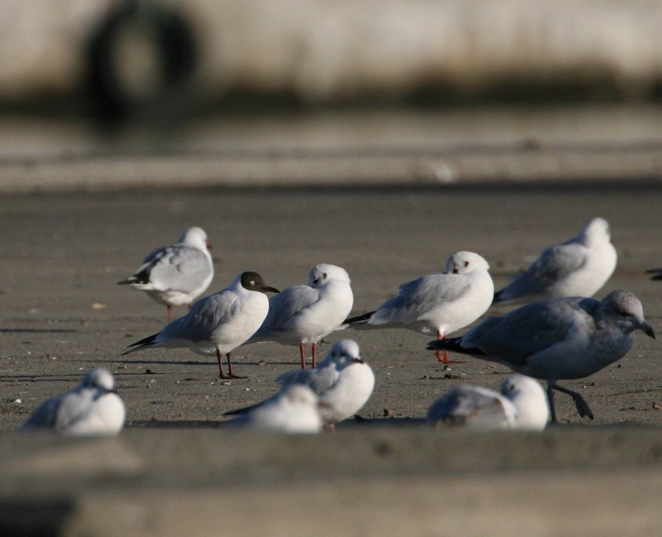 Det er dog meget besynderligt, at ben og næb er så mørke. I "Gulls" har jeg dog et foto af en lignende mørknæbbet fugl (sammen med sorthovedet), så helt ukendt er fænomenet ikke. At det så ses på en fugl der også har atypisk sommerhætte ligner en af den slags tilfældigheder, der næsten synes umulige (men naturen kender ikke til statistisk significans).
