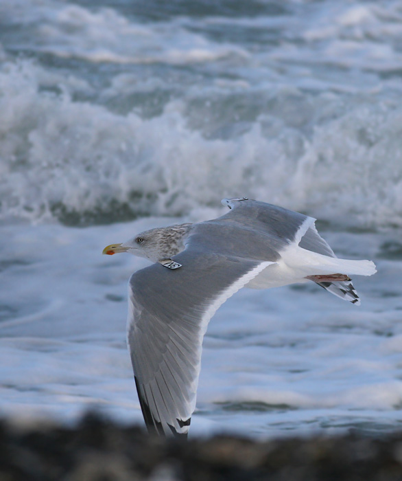 Sølvmågen er ringmærket af Andreas Buchhiem på en losseplads ved Datteln nær Dortmund 28. december 1999 i en alder af 3½ år gammel. Siden er fuglen aflæst flere gange om vinteren i Tyskland (Hannover-Köln området), to gange i Danmark (Hanstholm og Ørhage) og én gang i det sydlige Norge. Det tyder således på at fuglen er en norsk eller russisk ynglefugl som tilbringer vinteren i Tyskland og undervejs passere den jyske vestkyst (se nedenstående kort kort). Da fuglen blev set ved Ørhage var den 11½ år gammel.
