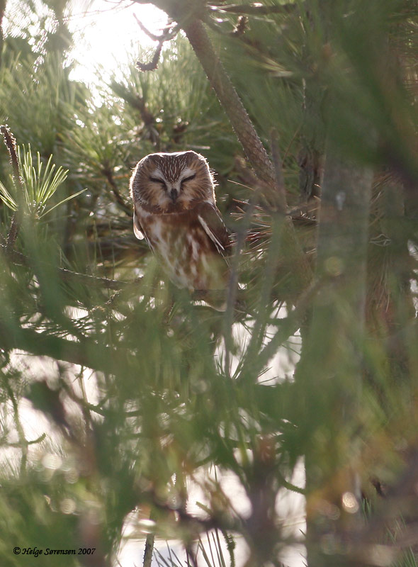 Beskrivelse: Ca. ½ størrelse af vores Perleugle. Rastende i hotelhave, ualmindelig trækgæst i Cape May - og et stort tilløbsstykke!
