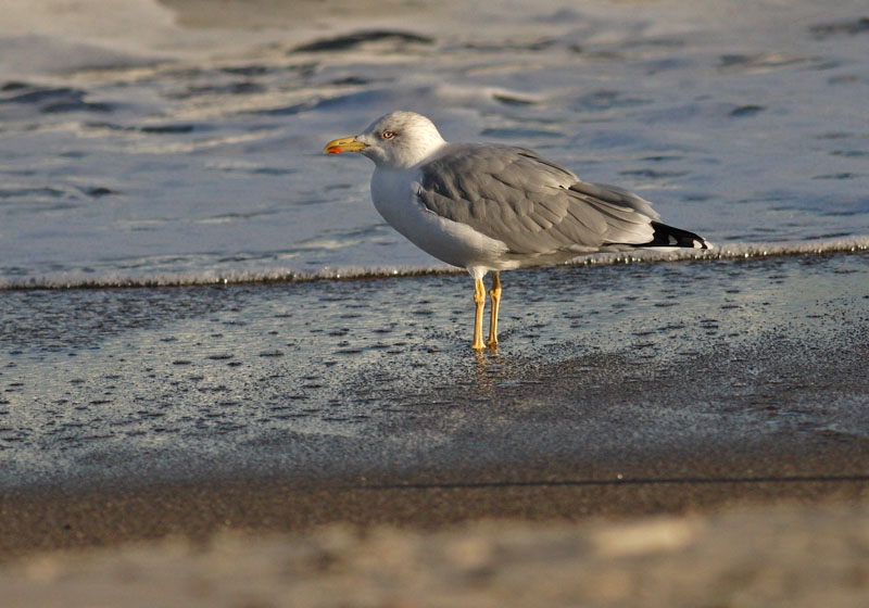 Jeg tror at det er en middelhavnssølvmåge fordi: Lange varmt gule ben - mørkegrå ryg - lange vinger - mørkerød orbitalring - stor rød plet på næbbet - pletternes størrelse på svingfjerene kan jeg ikke bedømme.