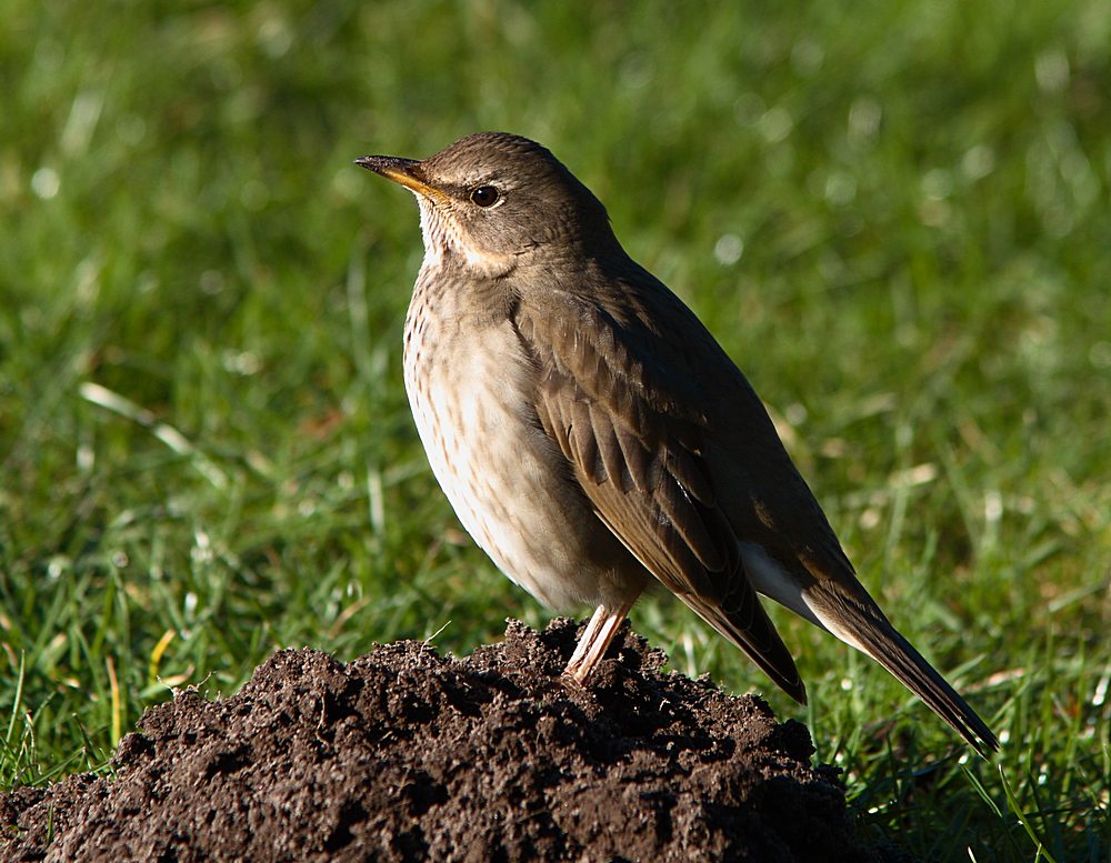 Titel: Sortstrubet drossel på sit muldvarpeskud.