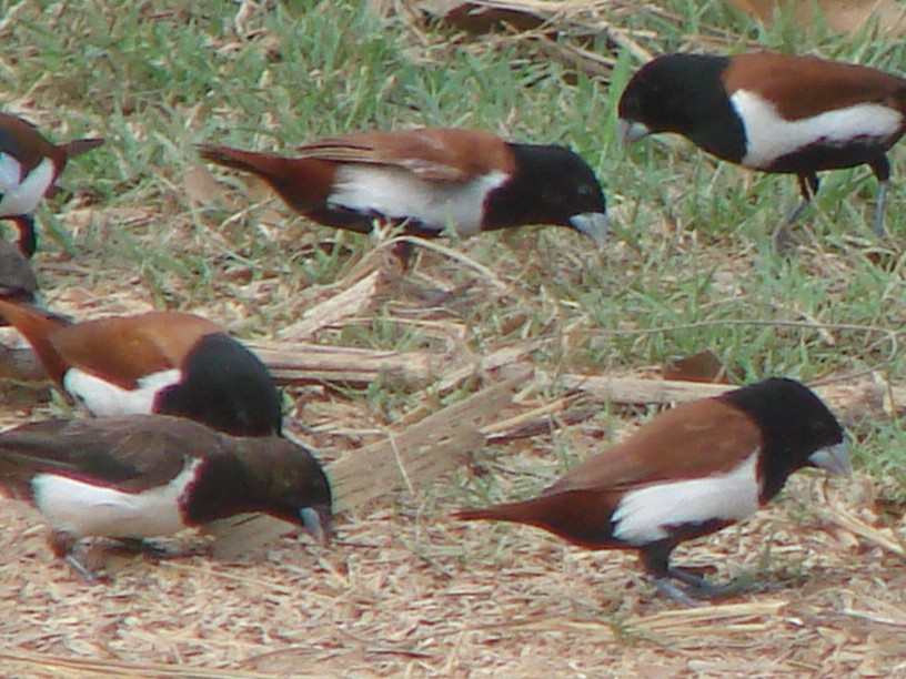 Beskrivelse: Ikke nogen fantastisk skarpt billede men er det ikke en v.p. art der mangler? En White-rumped munia (Lonchura striata) er også med pa billedet.