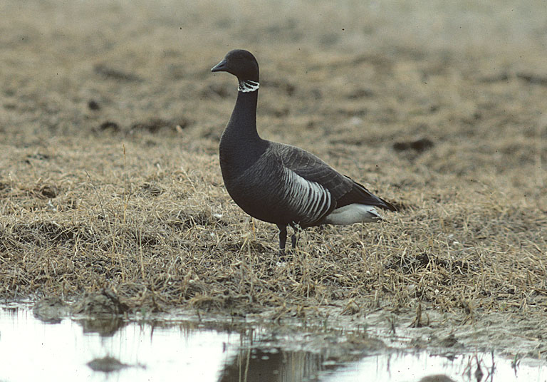 Beskrivelse: Her nogle billeder af Mørkbuget Knortegås fra hjertet af deres yngleområde. Denne han er nok ret karakteristisk, men fortsat ses grænsen mellem sort bryst og mindre sort bug tydeligt.