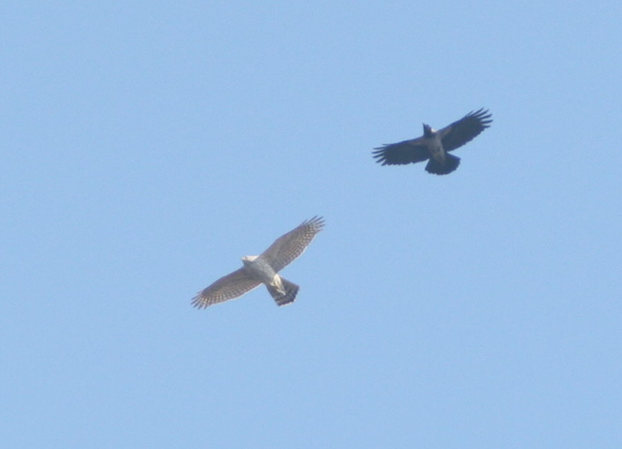 Beskrivelse: Denne bamse af en Duehøg rastede kortvarigt over Aborrebjerget. Ud over at arten efter sigende er et lokalt hit på den egn, synes jeg også den ser temmeligt spændende ud. Den er både meget stor og meget lys - kendetegn der peger i retning af den østlige race Accipiter gentilis butoides..?