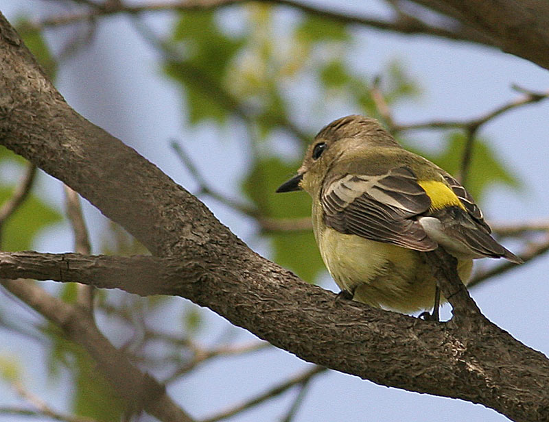 Beskrivelse: Hunnen af denne art - Gulgumpet Fluesnapper - har store hvide vingefelter og påfaldende gul overgump.