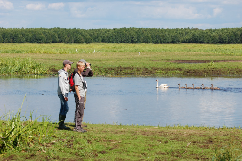 Beskrivelse: Rasmus Bøgeskov Larsen, Andreas Pedersen og David Manstrup nyder hvidskægget terne, mens en svane familie lige så smukt svømmer forbi.