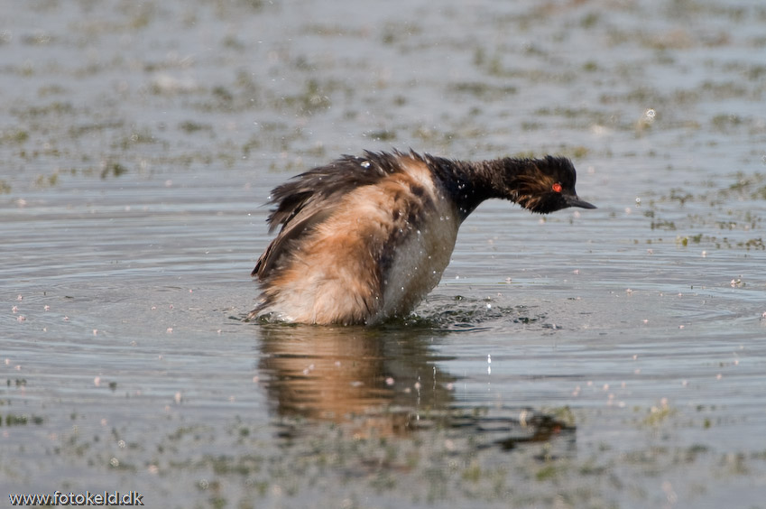 Beskrivelse: sorthalset lappedykker pudser fjerende.
