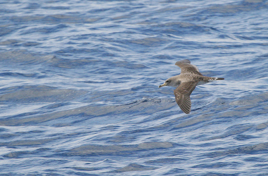 Dejligt billede, som viser den karakteristiske lyse trekant, som er dannet af nakke og forryg,som kan ses meget langt væk. Af og til er det det eneste man ser i sekunder, og fuglen er mod mørkt,uroligt hav, inden den skråper op og viser alt det andet.