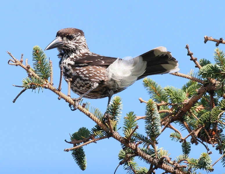 Nøddekrige (Nucifraga caryocatactes) Spotted Nutcracker -