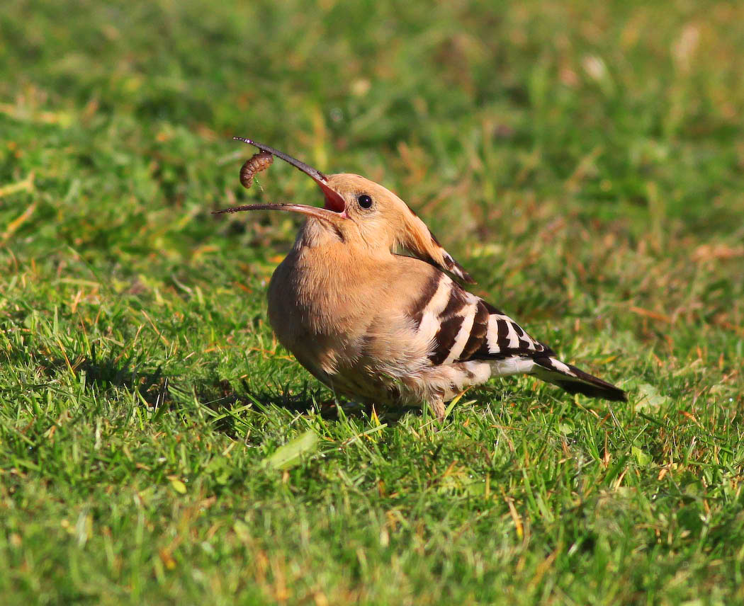 Beskrivelse: Fulgt i perioden kl.08- 13.55, og langt det meste af tiden søgte den føde på en græsplæne. Fangede et utal af disse laver???