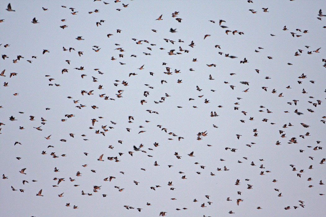 Beskrivelse: Tusindvis af duer har rastet i strandskoven og begiver sig sydpå ved solopgang