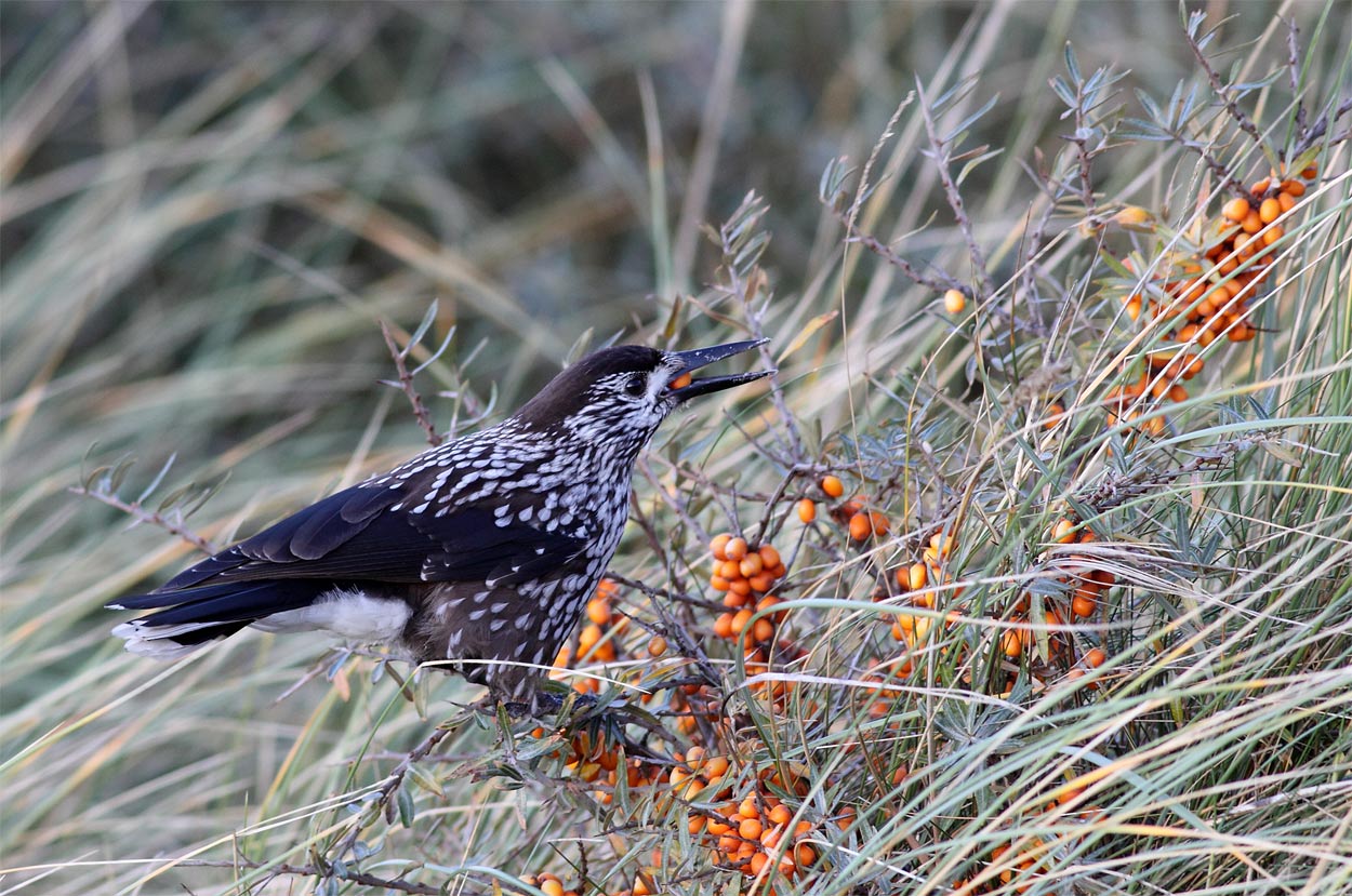 Herligt billede knud! Viser tydeligt de tyndnæbbedes stærkt variable kost når de forekommer her i landet. I modsætning til de tyknæbbedes specialicerede nøddemenu.