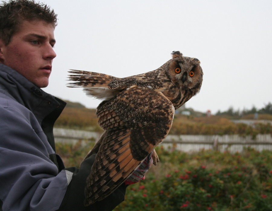 Beskrivelse: Der bliver ringmæket lidt af hver her i blåvand og idag var vi så heldige at fange denne flotte 1k skovhornugle