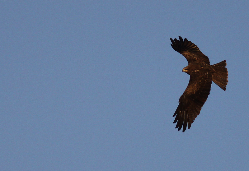 Hvis man ikke har set den sorte glente i løbet af dagen, kan man evt. prøve at kigge efter fuglen, når den går til overnatning.