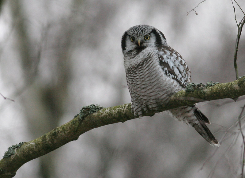 Beskrivelse: Denne høgeugle er p.t. stationær ved Ora Fritidsområde i Sjöbo´s sydøstlige del. For at finde stedet så kør mod campingpladsen ved skiltningen i Sjöbo. Når man ankommer er der et hus og en p-plads ved et skilt med "Sjöbo Ora Fritidsområde), og det er i birkelundene umiddelbart ved p-pladsen, fuglen holder til. Den blev idag tidvis jaget en del rundt af Gråkrager, men har også andre dage været temmeligt omkringflyvende, ifølge svenske ornitter.