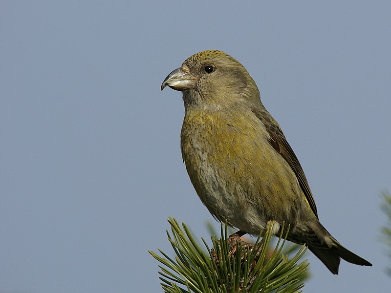 Beskrivelse: En lile flok Lille Korsnæb landede i en lav fyr ca 30 meter fra kysten. Her plukkede de koglerne af og fløj med dem op i et asketræ, der står ved siden af. Her blev frøene pillet ud.