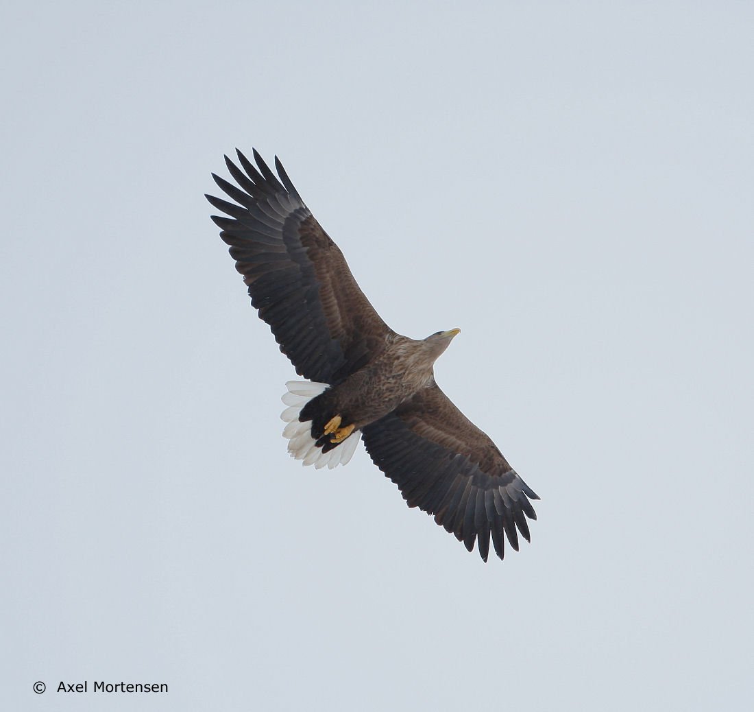 Beskrivelse: Havørnen kom ind fra øst - alle ænder og gæs gik på vingerne, hvorefter havørnen fortsatte i retning mod Arresø.