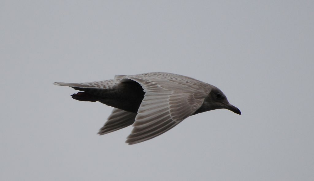 Jo - det kan se ut som om det saknas tydliga mörka spetsar på undersidan av de yttre handpennorna som Jörgen antyder,Även på ovansidan är de mörka spetsarna på de inre handpennorna otydliga och kan upplevas som otypiskt för thayeri. Emellertid, är inte vissa individer tydligt mörktecknade på de inre h-pennornas spetsar, kanske särskilt hos 2k fåglar på senvintern/förvåren. Det är svårt att bedöma mörkhetsgraden på stjärt ving-pennor samt armpennor, dock verkar vingpennornas ytterfan och armpennor mörkare än tertialerna samt aningen mörkare än stjärten, vilket tillsammans med formen och näbbstorlek ser bra ut för en thayeri. Hoppas på fler bilder.
