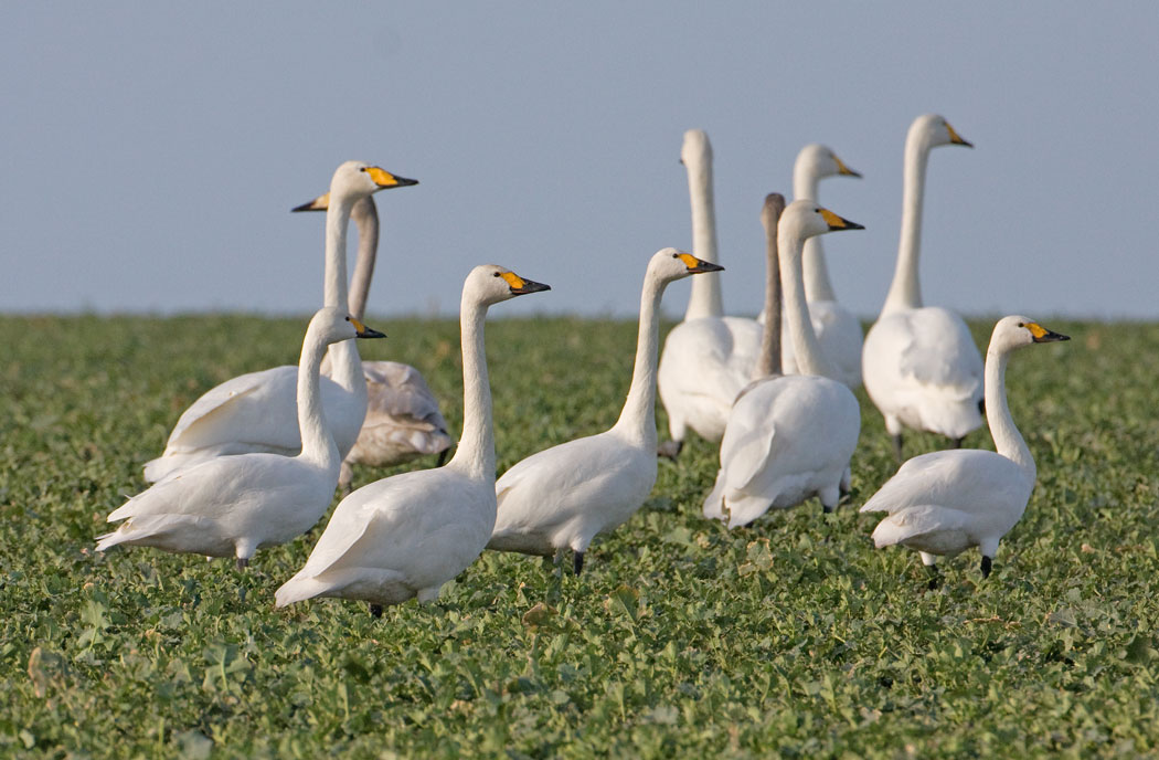 Beskrivelse: 16 pibesvaner rastede med 250 sangsvaner