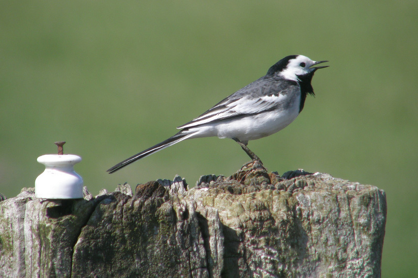 Beskrivelse: Pga. mørke pletter på ryggen, stærk kontrast mellem hvidt og sort på ryg og vinger samt sort overgump formodes dette at være en hun af Sortrygget hvid vipstjert.