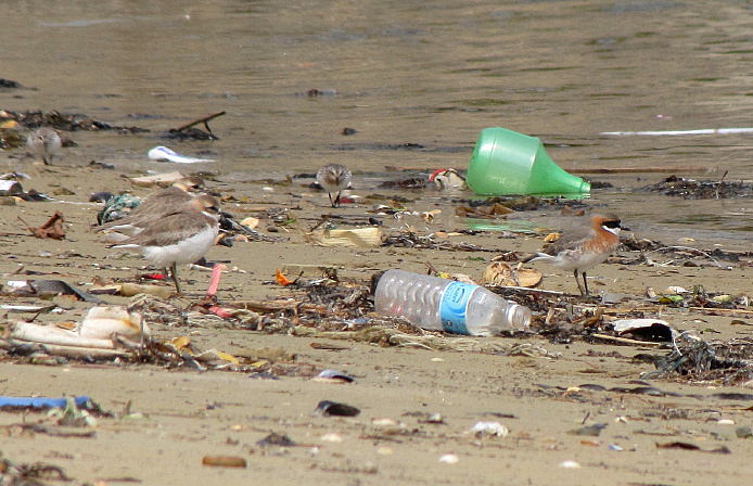 Beskrivelse: Ikke meget strand på klippeknolden Eocheong-do, men kvalitet kunne tit opveje kvantitet. 2 Ørkenpræstekraver, Mongolsk Præstekrave og 2 Rødhalsede Ryler i baggrunden.