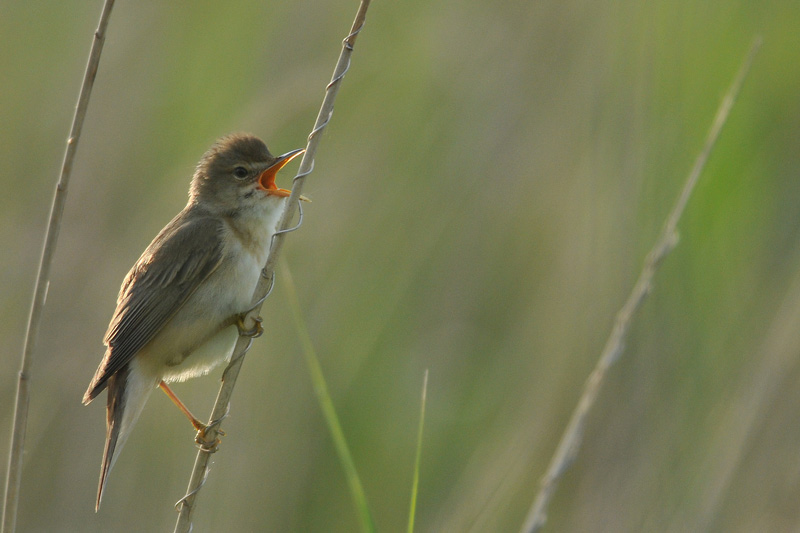 Ja, man kan jo ikke lige høre hvad den synger, men jeg vil nu tro det er en Kærsanger.Alene det at næbbet er kraftigt åbent når den synger passer ikke på en Rørsanger.