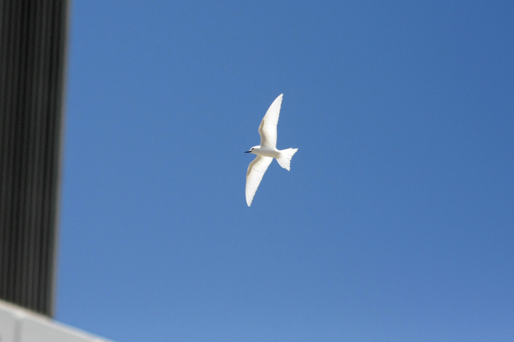 Beskrivelse: En bizar oplevelse at se disse smukke terner flyve rundt mellem skyskraberne ved Waikiki Beach og lande i træer midt på en markedsplads. Tilsyneladende lader de sig ikke gå på af de mange menneskers larm, gøren og laden. White Terns yngler i træer.
