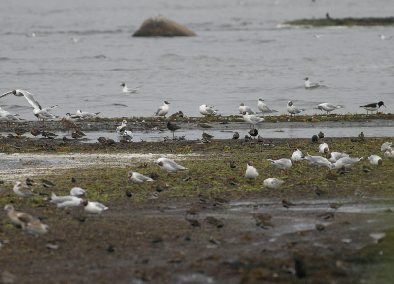 Beskrivelse: Sortklire adult sommerdragt ses midt i billedrt - men hvor mange andre arter gemmer sig her?