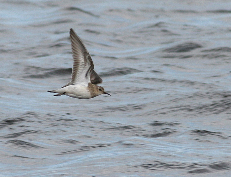 Beskrivelse: Flyvende Temmincksryle. Bemærk det brungrå hoved og forbryst og den mudderklireagtige undervinge. Temmincksryle i flugten virker ofte langvinget, forstærket af kort krop og hale.