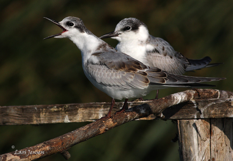 Endvidere er store dele af ryggen fældet til 2. generations grå fjer, hvilket Hvidvinget Terne ifølge min erfaring generelt gør senere end Hvidskægget Terne, hvor denne rygfældning ofte ofte er ret fremskreden allerede i løbet af september.