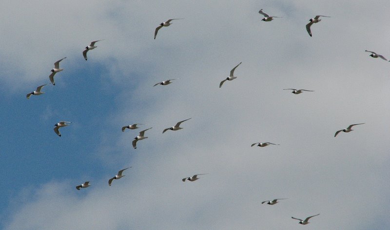 Beskrivelse: Flokke af udfarvede Præriemåger kan dukke op mange steder i det indre USA, på vej mod ynglepladserne længere nordpå, men de har fart på.