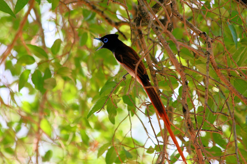 Beskrivelse: Udbredt i Swaziland, hvortil den kommer som sommergæst. Halen vokser hurtigt ud i ankomstperioden, de blå farver ved øjne og næb intensiveres, og hannerne synger meget.